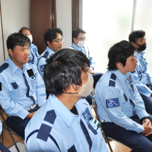現任の警備員は、1年に1回の現任教育を受けることが警備業法で定められています。警備員現任教育では現場の実態に即した指導教育を行っており、警備員の質の向上、安全を守る意識の強化とともに警備員の心構えなど、お客様のあらゆるニーズに合わせた警備をご提供できるよう優秀な人材育成を心掛けております。 -