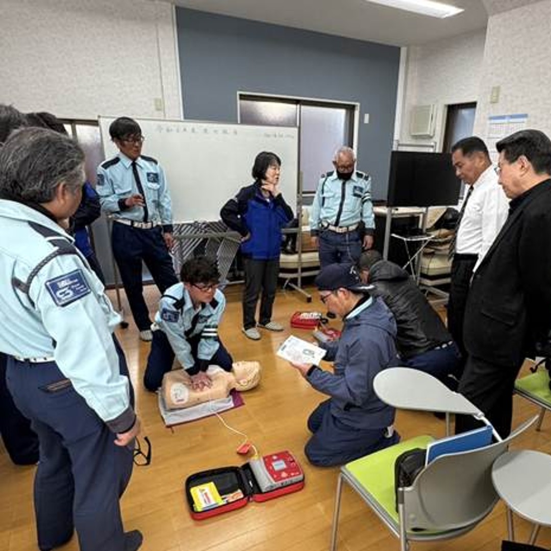 現場で緊急事態に対応できるよう、模型を用いた実技を繰り返し、心肺蘇生法やAED操作の正しい手順を身につけています。業務中は独自に作成したフローチャートを常時携帯し、万一の場面でも迷うことなく冷静に対応できる体制を整えています。